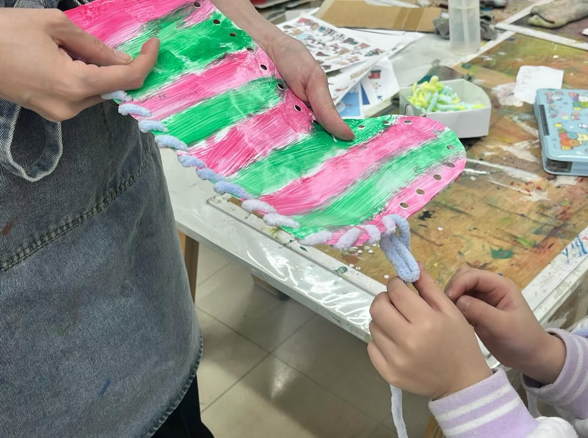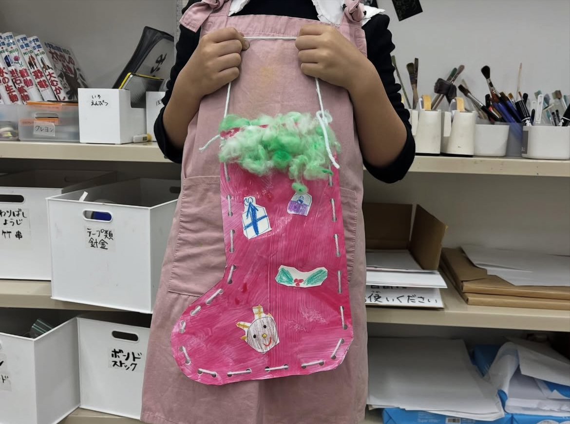リスマスの準備バッチリ☆★11月はブーツ(くつした)を作りました。サンタさんは靴下にプレゼントを入れてくれるんだそうでよ。生徒さん一人ひとりが思いおもいのデザインを考え形にしていきました。飾りも工夫を凝らし、いろんな材料を組み合わせて製作します。毛糸でポンポン作りにみんなハマって楽しんでいましたね。最後にポンポンを飾って完成です!素敵なクリスマスを迎えられそうですね^^