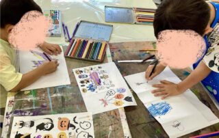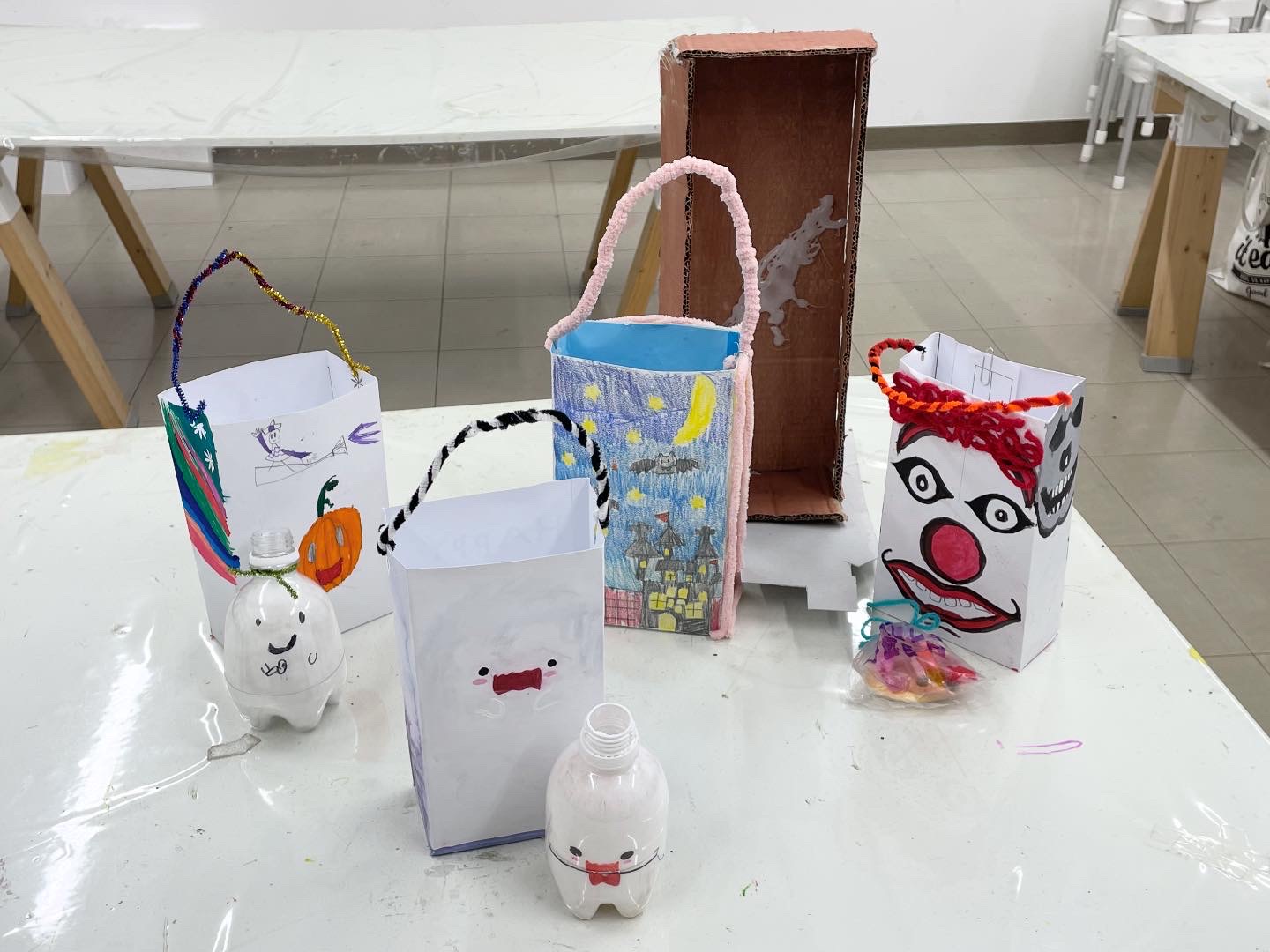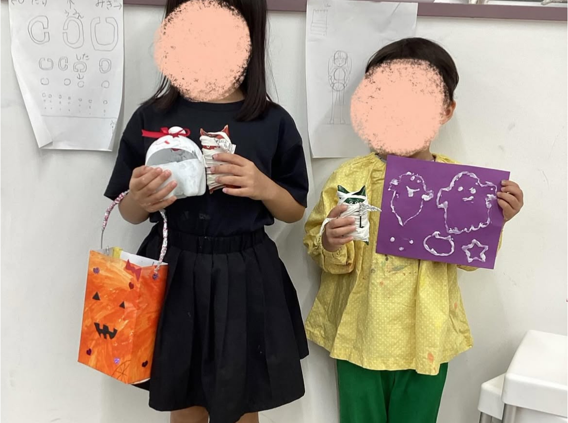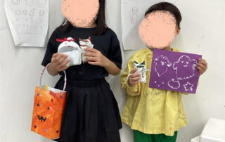 ハロウィン工作。「お菓子入れ」をテーマにみんなでいろんな入れ物を作りました。展開図から箱を制作する作業では、定規を使って線を引いたり組み立てたり、試行錯誤しながら立体に作り上げました。お化けやかぼちゃ、魔女やピエロなど、思いおもいのモチーフを描いたりつけたり、生徒さんのアイデアと頑張りで素敵な作品が出来上がりました。残りの時間で紙粘土を使ったお菓子作りも。一足早く、ハロウィンの準備バッチリな生徒さんたちなのでした☆10 月の課題は「きのこの観察」です。お楽しみに!